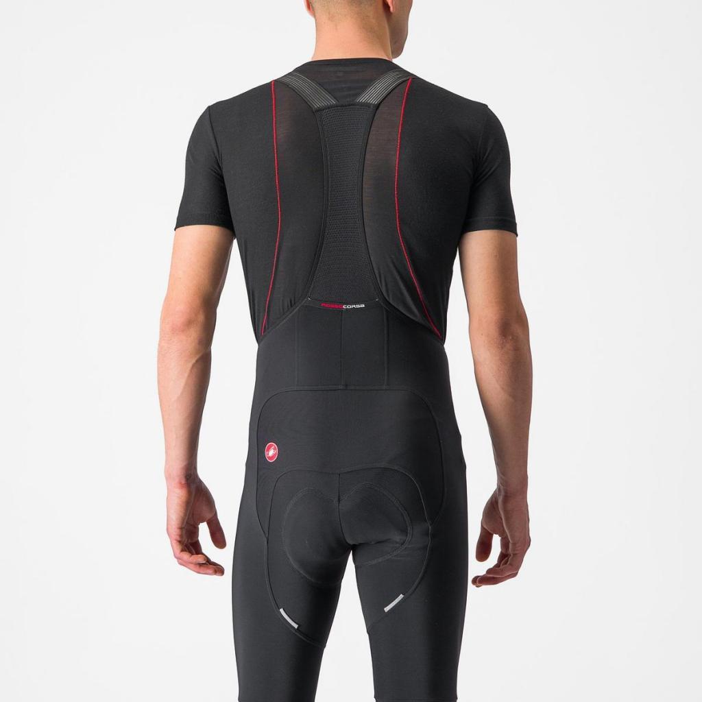Ribgebreide strecht van 100% polyester hoofdbodystof met Prosecco hydrofiele behandeling voor maximale vochtafvoer PrimaLoft-panelen in de taille en op de rug waar de bibtights het bovenlichaam bedekken, om ongelijkmatige isolatie te verminderen Korte neksluiting om te passen onder kortgekraagde truien